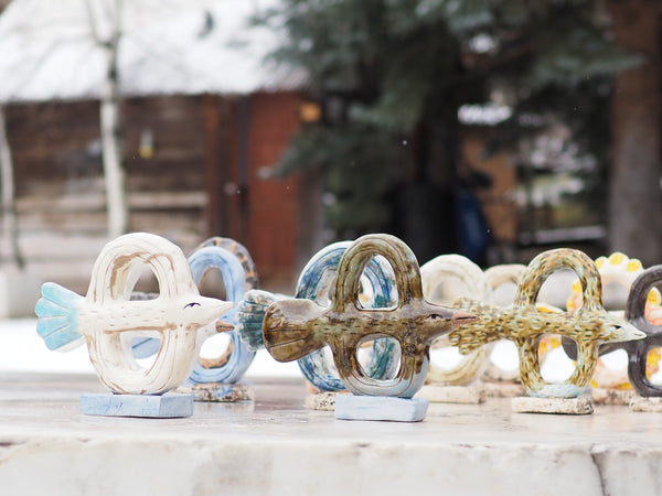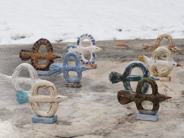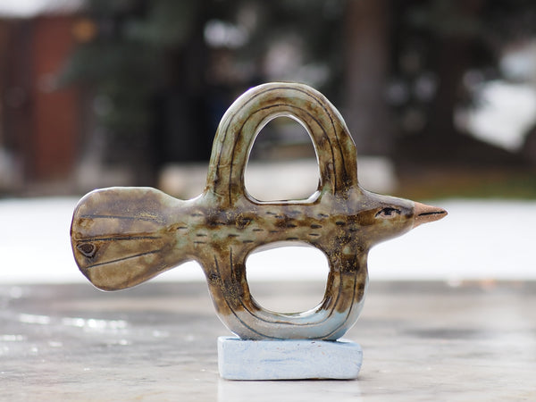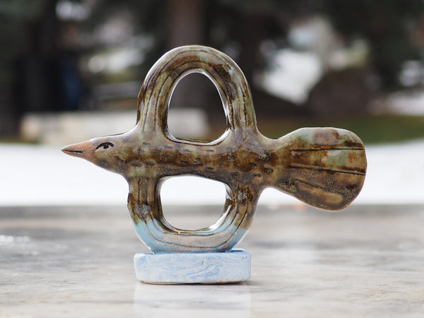 Made using a custom two-part press mold and then altered by hand after. Lili made this as part of a series of birds during her residency at Anderson Ranch in Colorado.