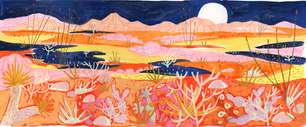 Melissa Lakey is a contemporary visual artist and illustrator based in Yucca Valley, California. Her colorful figurative and landscape-based works are inspired by the desert where she lives as well as a childhood of watching westerns and dreaming of becoming a cowboy.