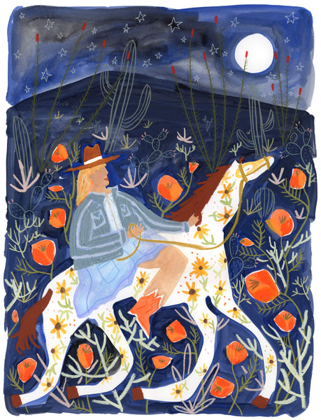 Melissa Lakey is a contemporary visual artist and illustrator based in Yucca Valley, California. Her colorful figurative and landscape-based works are inspired by the desert where she lives as well as a childhood of watching westerns and dreaming of becoming a cowboy.