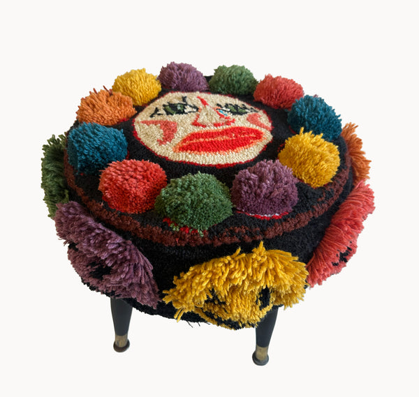 18" x 18" x 15"Tufted wool, foam, wood, vintage legs