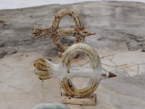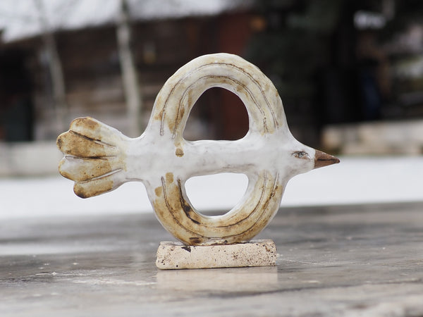 Made using a custom two-part press mold and then altered by hand after. Lili made this as part of a series of birds during her residency at Anderson Ranch in Colorado.