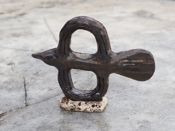 Made using a custom two-part press mold and then altered by hand after. Lili made this as part of a series of birds during her residency at Anderson Ranch in Colorado.