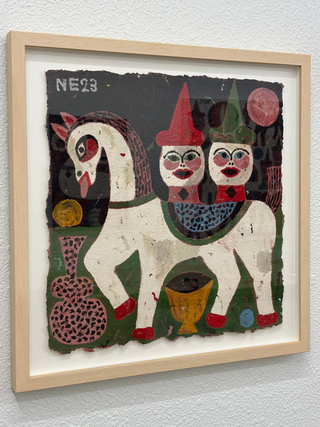 Nacho Eterno (1992) is a self-taught Spanish painter and ceramic artist based in the Girona countryside. His work is based on simple compositions with a raw color palette, creating an innocent but mysterious atmosphere. Folk art and ancient art cultures are core in his imaginary.